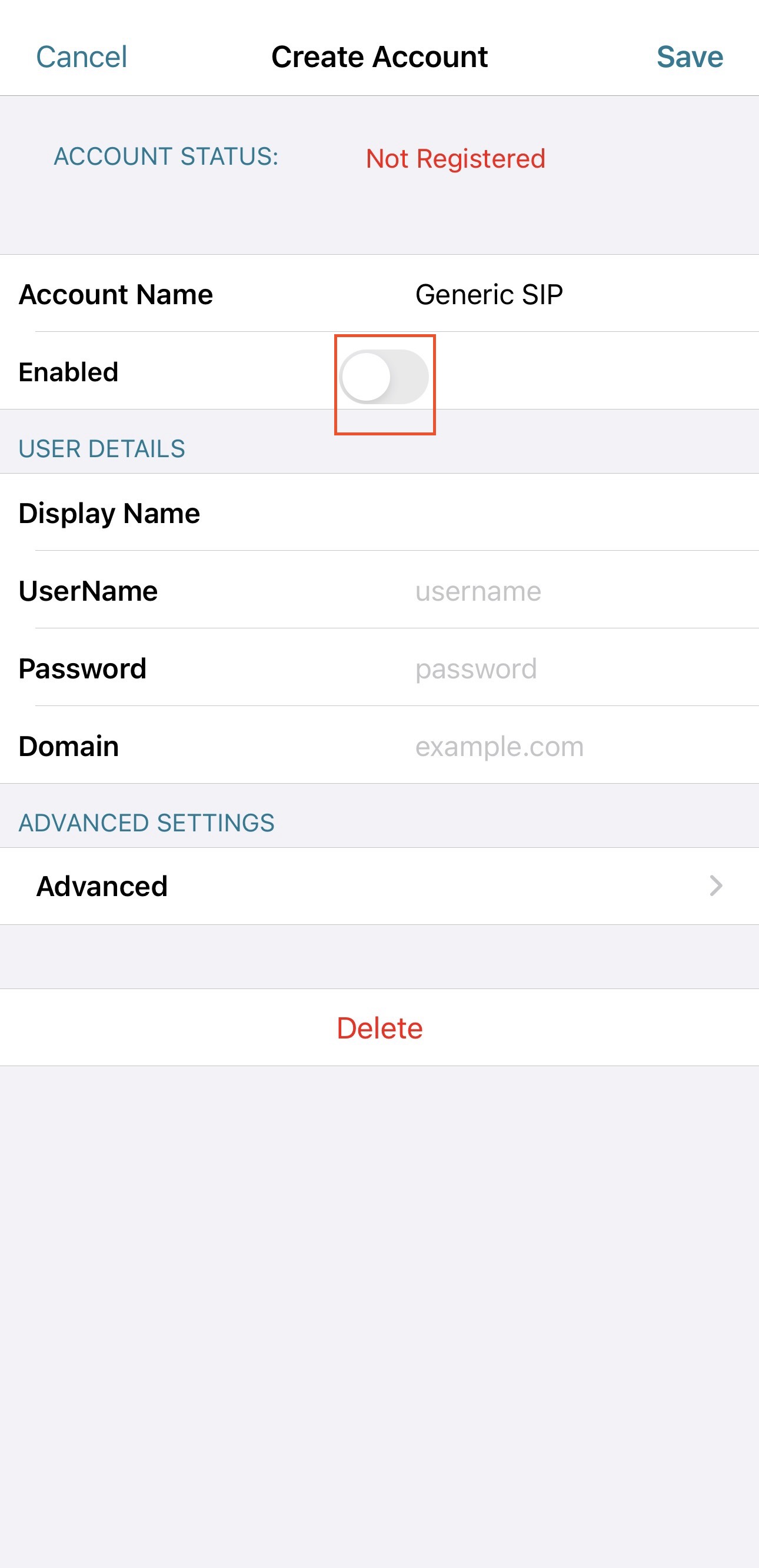 Once you have entered all the information, tap Done at the top right corner, and then ensure the account is toggled to Enabled.