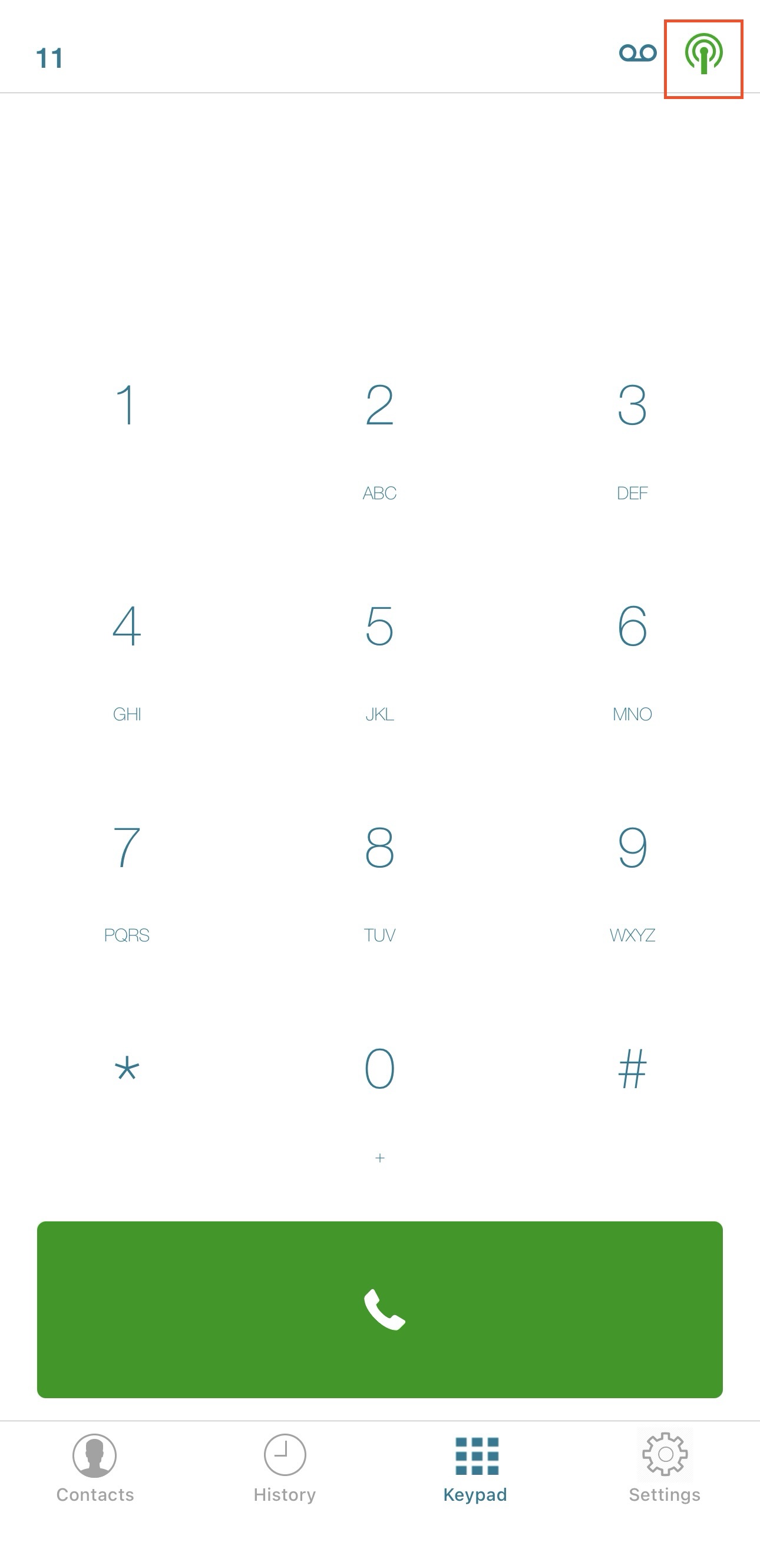 If everything is set up correctly, tap on the Keypad icon at the bottom of the application. On this page, you should see the signal icon at the top right corner turn green, indicating it is registered. If it remains red, please check the details you added in the previous step.